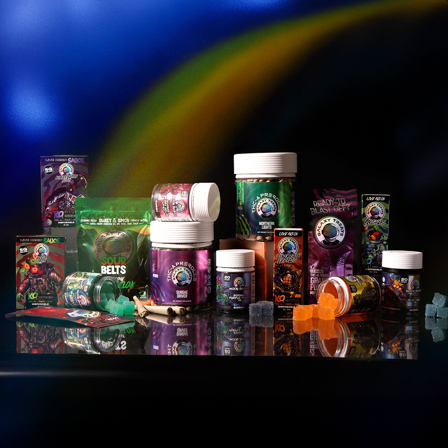 Galaxy Treats handcrafts industry-leading D8 and D9 edibles. Enjoy a full suite of rare-cannabinoid gummies, pre-rolls, and disposables offering otherworldly highs with uncompromised quality, smooth highs, and delicious flavors.