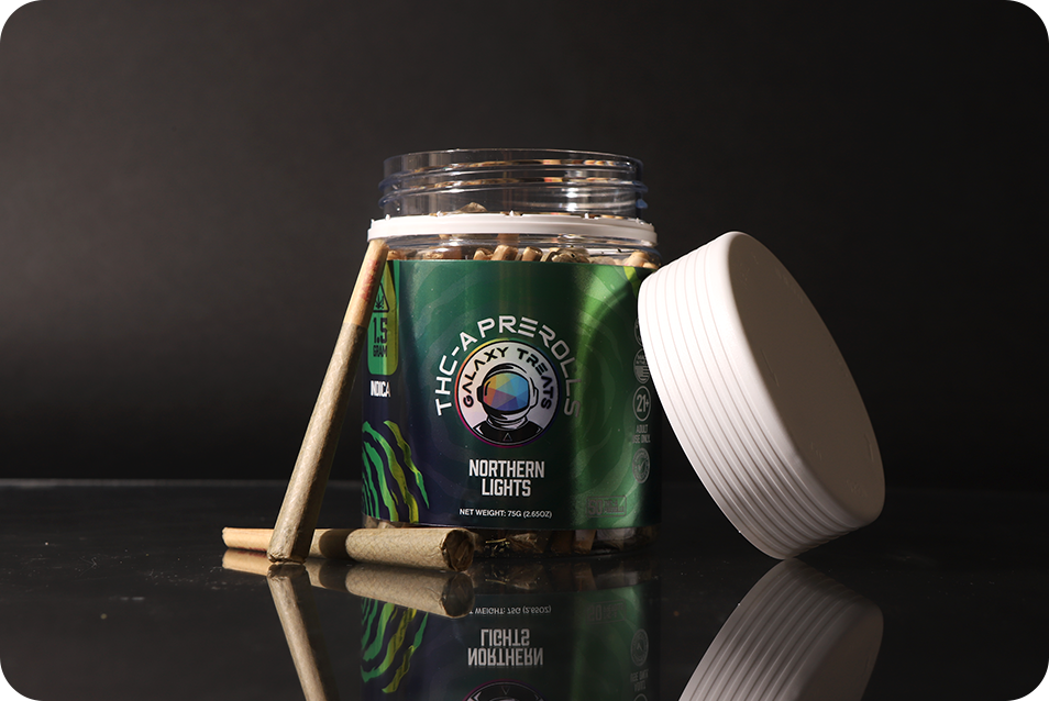 Take your stash to stellar heights with Galaxy Treats’ premium THCA prerolls — now available in convenient 50-count jars. Each preroll is packed with 1.5 grams of top-quality THCA flower, delivering smooth, potent pulls every time. Available in 3 signature strains, this collection is perfect for stocking up or sharing the cosmic experience.